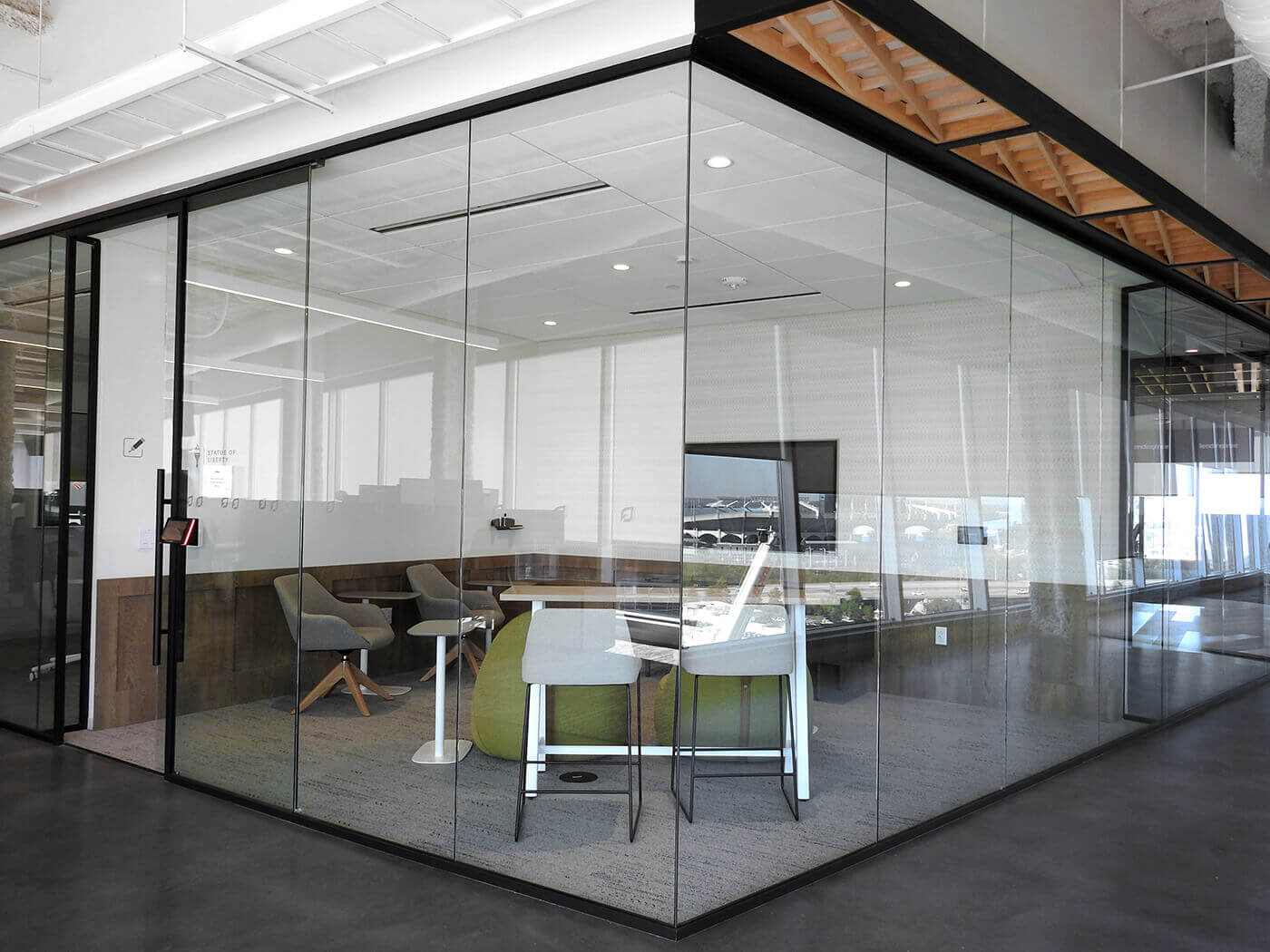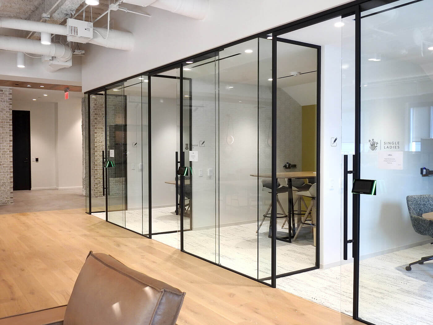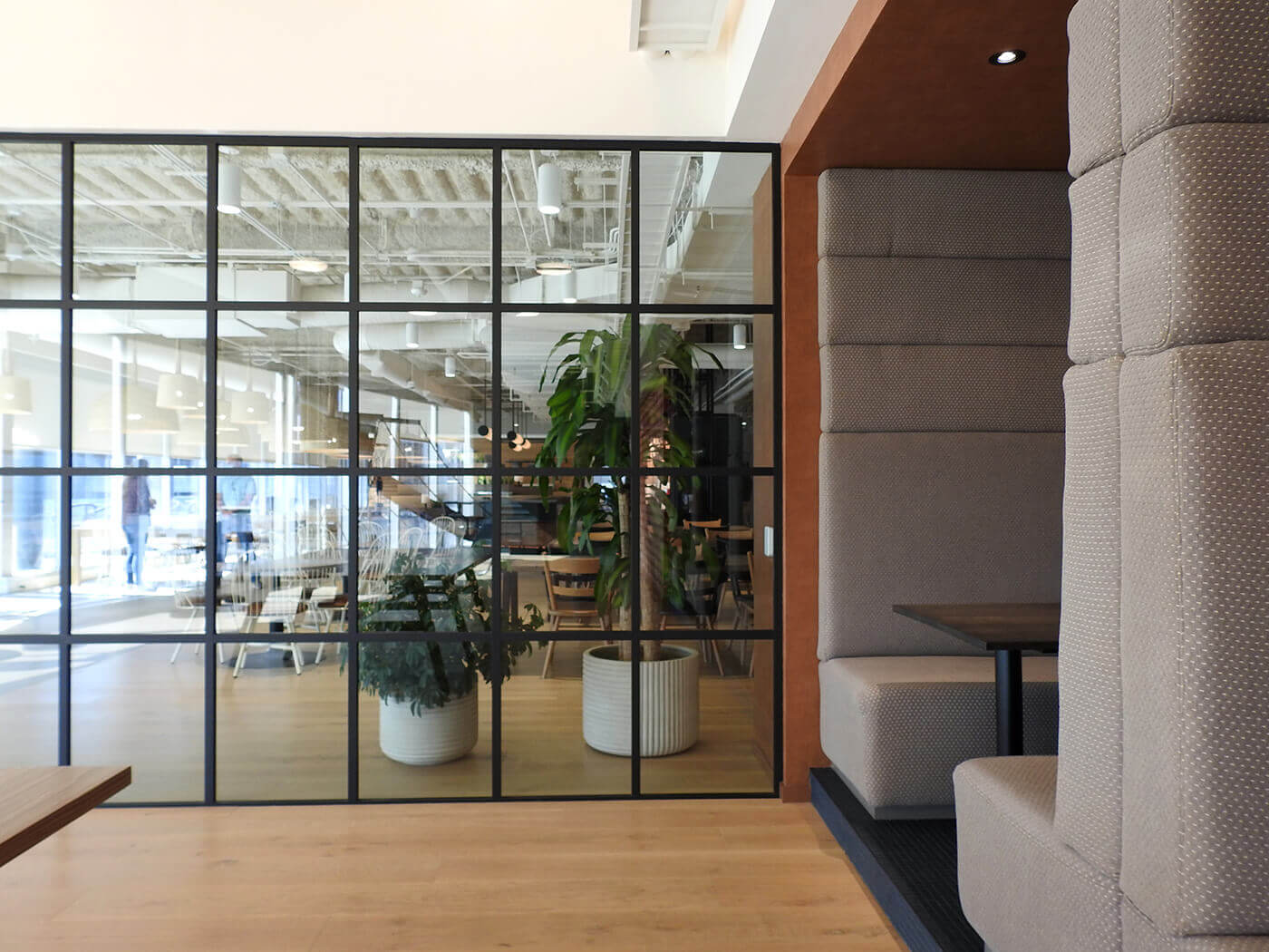 为了创造聚会空间和休息室,同时促进透明度和设计的开放概念,我们的经销商合作伙伴 Precision Walls 安装了带有哑光黑色饰面的 Horizon。 与 Carré 相结合,隔断赋予空间独特的设计和工业气息。 无框玻璃推拉门和平开门有助于实现所需的简约设计。