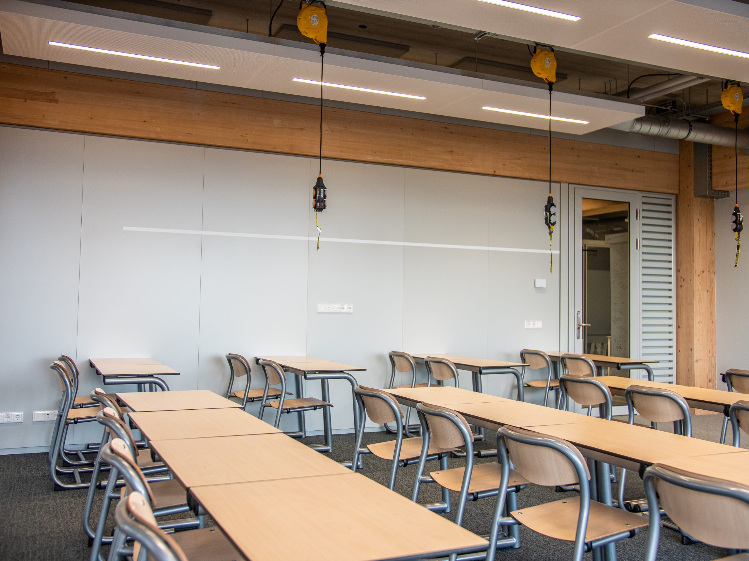 隔音、防火、安全等性能对这所学校同样重要。 我们的多功能墙系统 String2 兼具灵活性和性能。