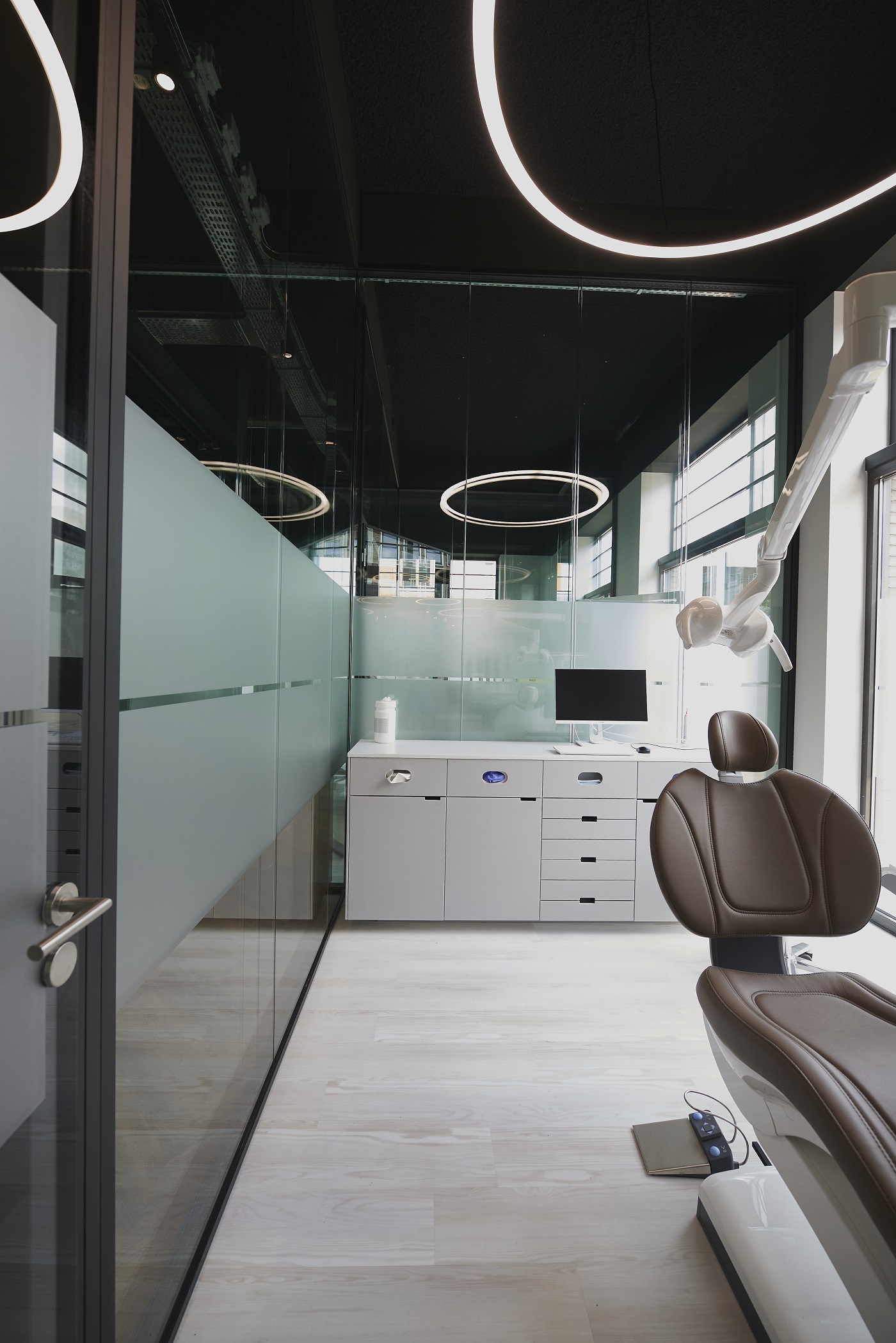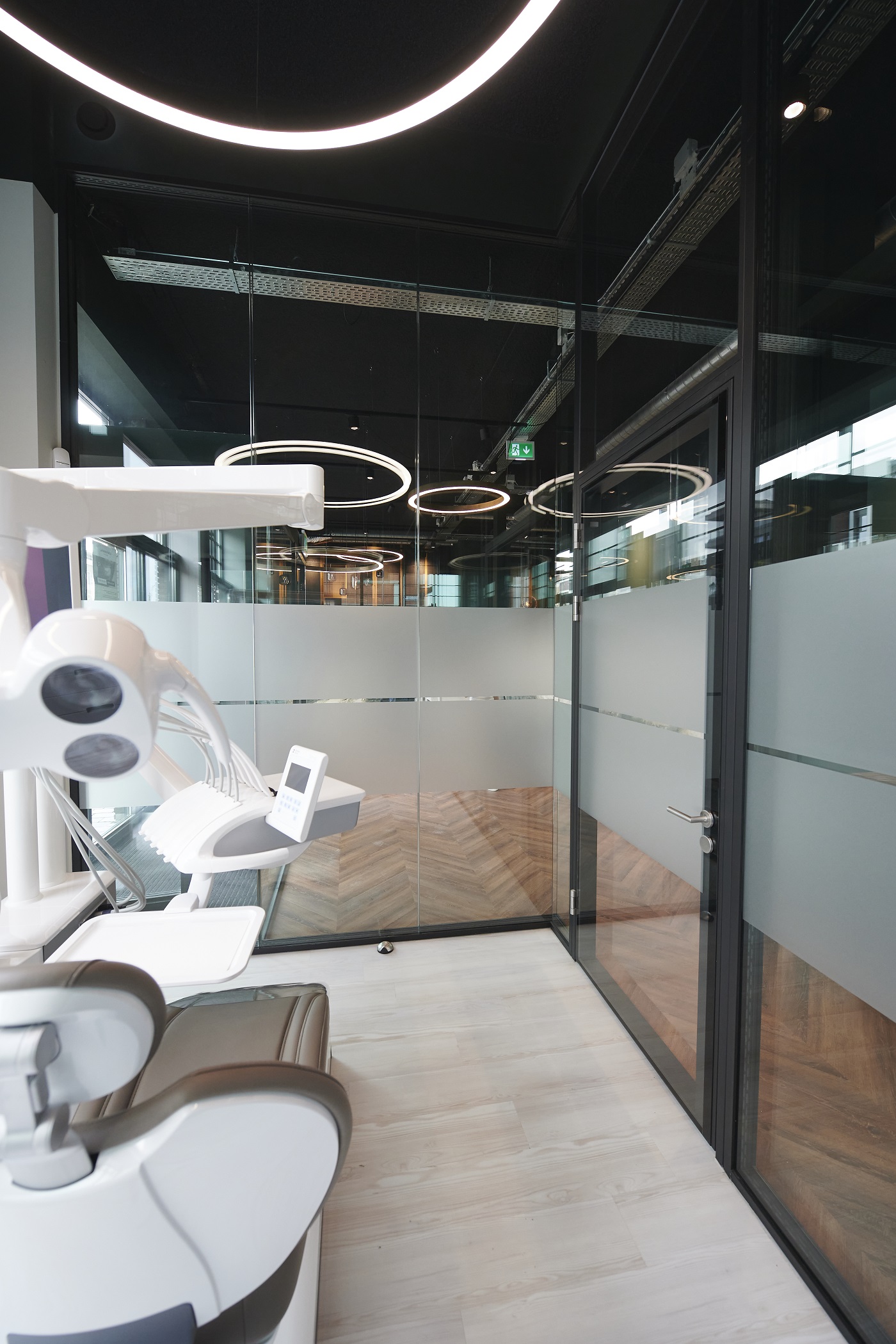 除了声学隐私外,卫生对于牙科诊所同样重要。 我们在 Confidental 安装的所有实心墙都涂有抗菌涂层,以确保空间的卫生。