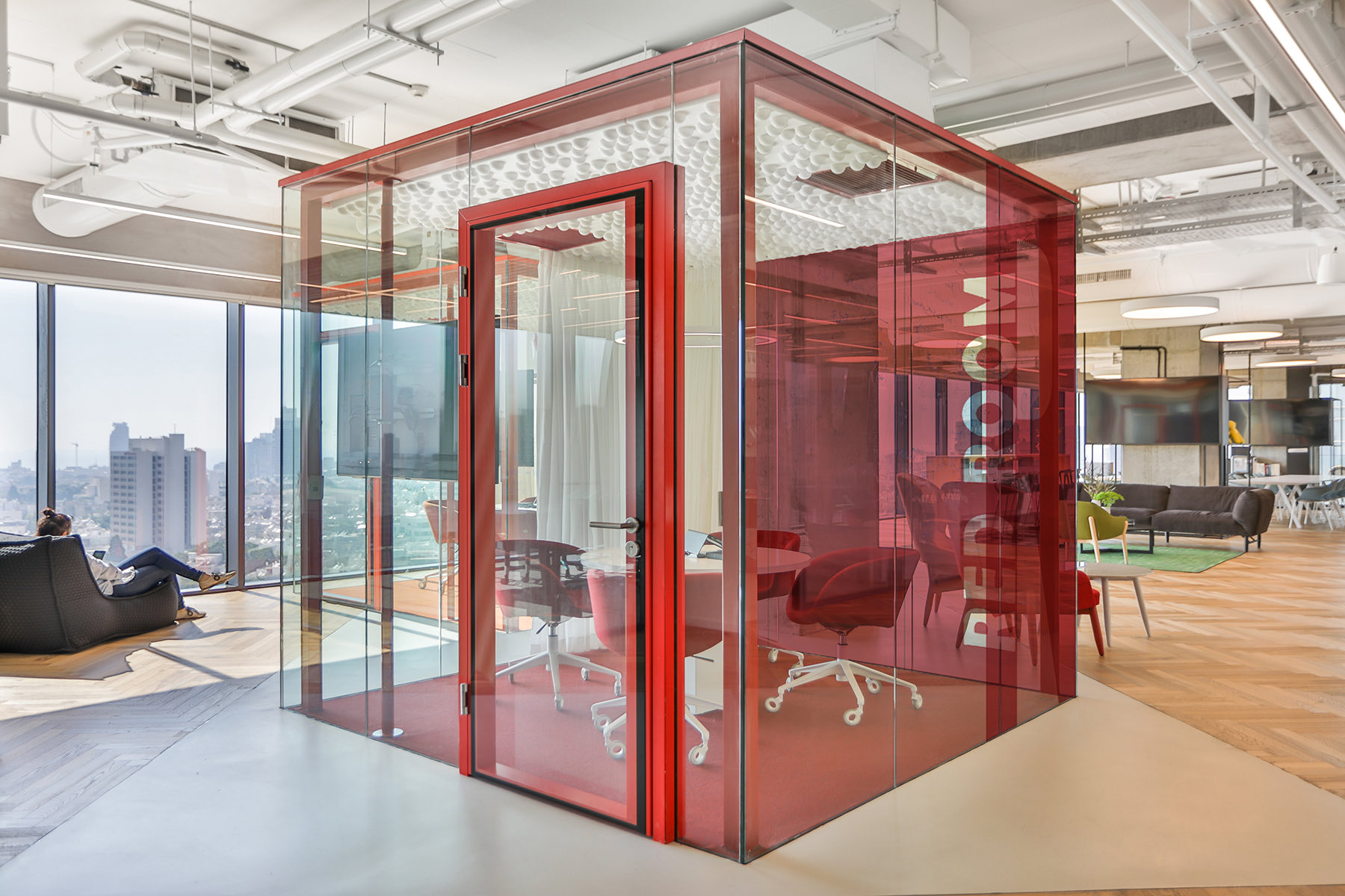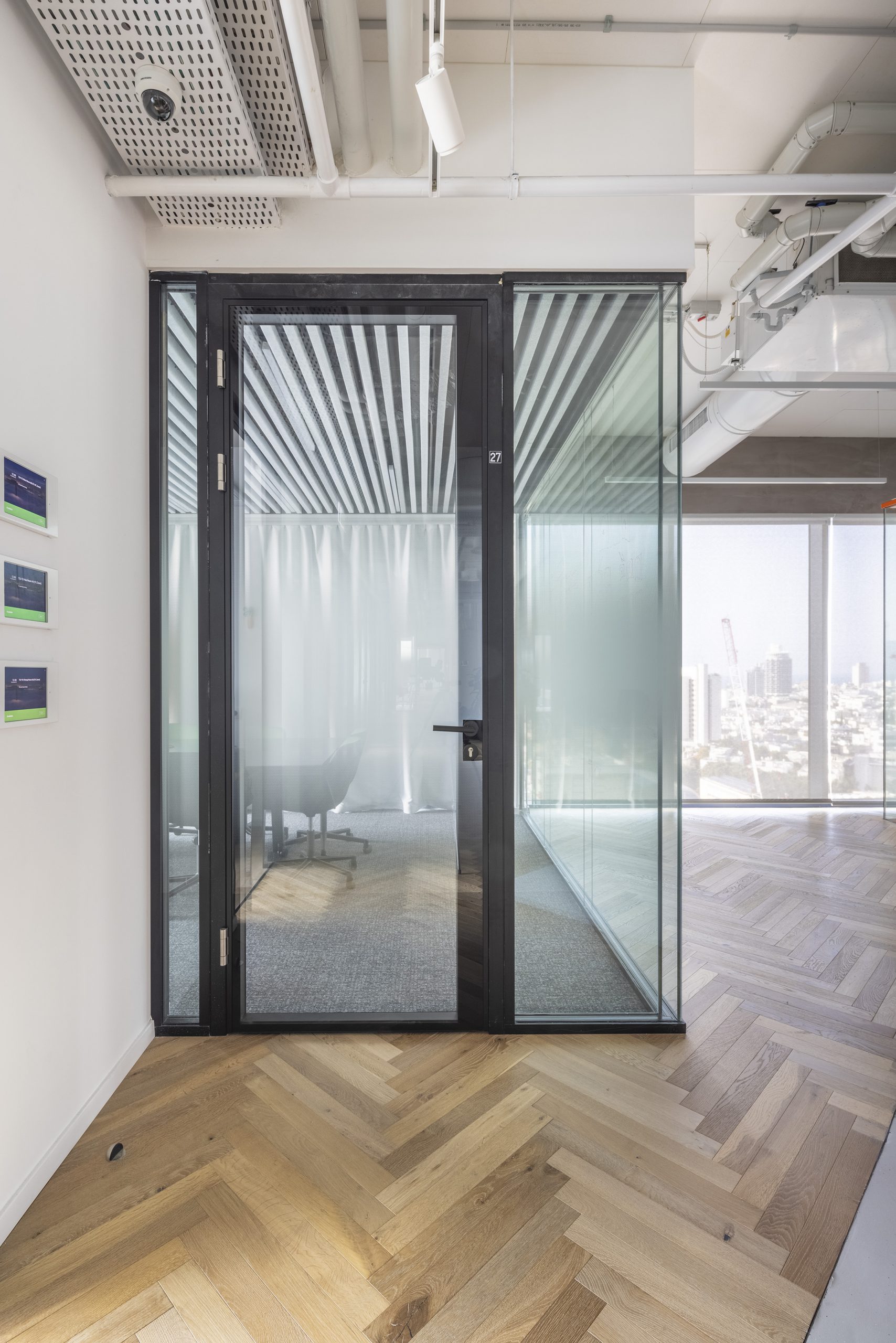 对于这个空间,需要声学隐私。 声学性能与美观和独特的设计同样重要。 我们的双层玻璃墙系统 Panorama 达到了 51 db/SCT 值,确保了最佳声学效果。