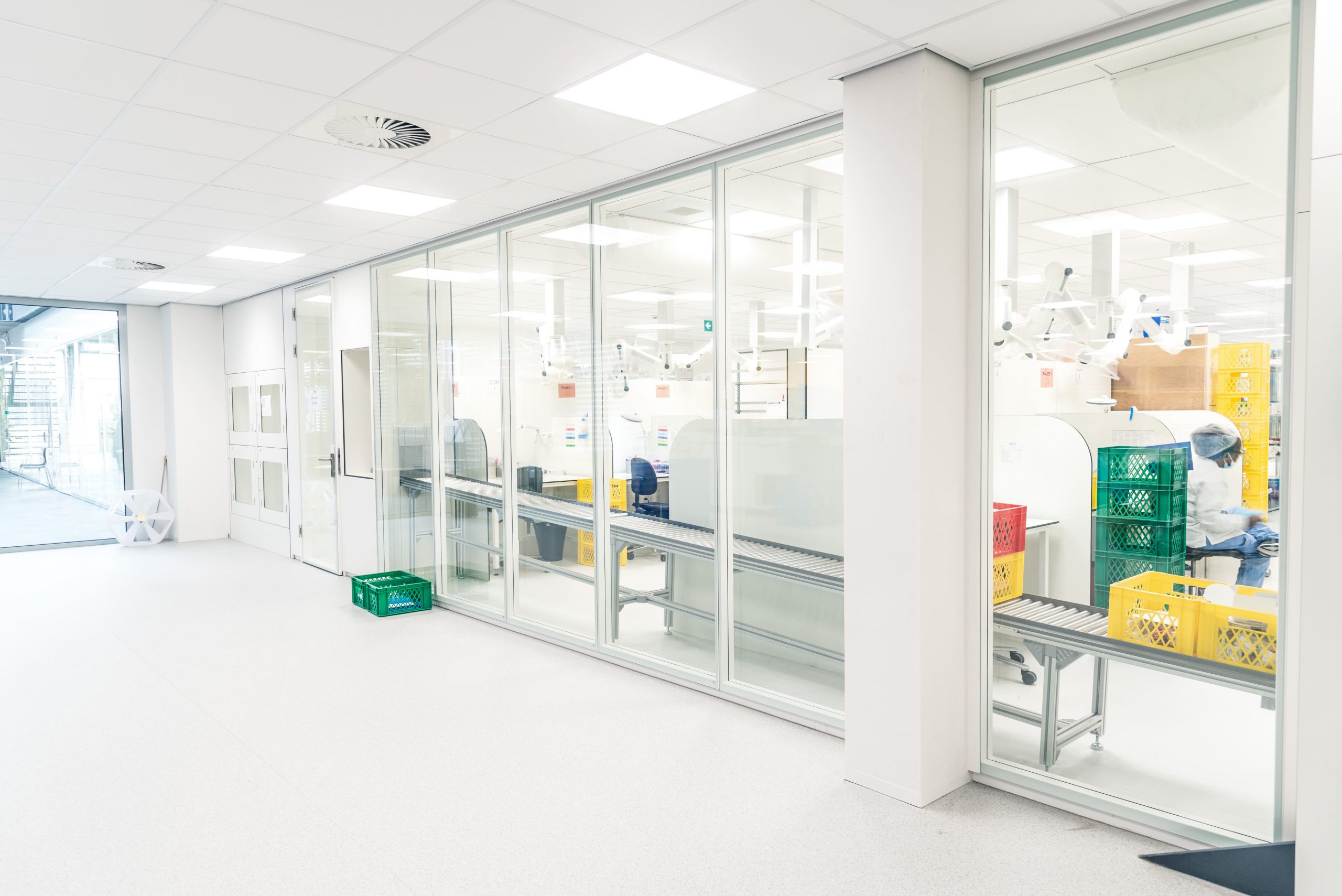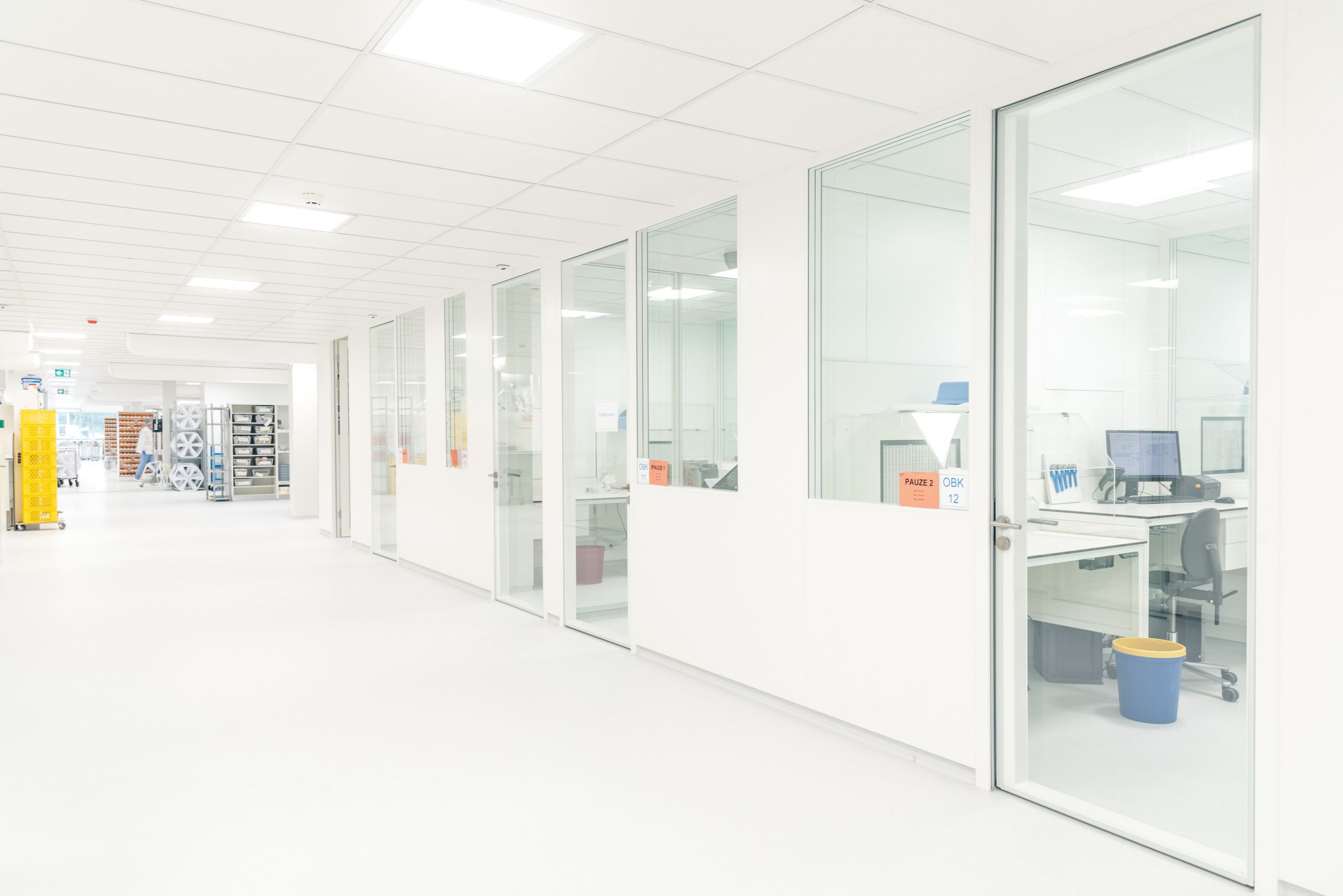 专注于洁净室的 Kropman Contamination Control 选择了 马尔斯隔断来建造这个高标准的洁净室。 对于这个洁净室,我们提供了 String² 钢墙和 String² 双块玻璃墙的组合,具有 0 和 5 毫米接头。