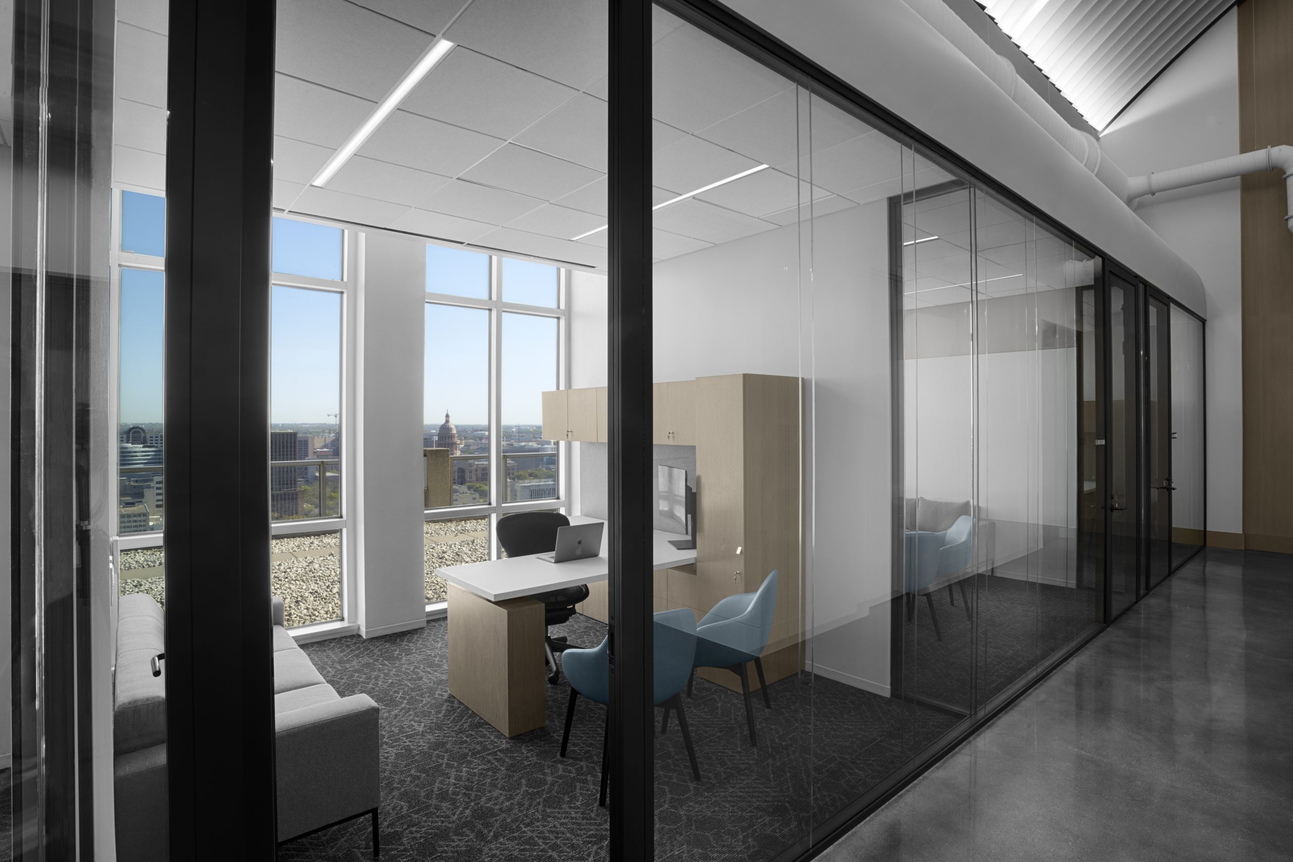 对于他们在休斯顿的位置,建筑师和客户需要具有高声学性能的简约外观。 对于这个特定的任务,建筑师规定了 Maars 双层玻璃隔断墙 Double Horizon。 Double Horizon 将 Maars 熟悉的单玻璃解决方案 Horizon 的高端和简约外观与终极声学性能相结合。
